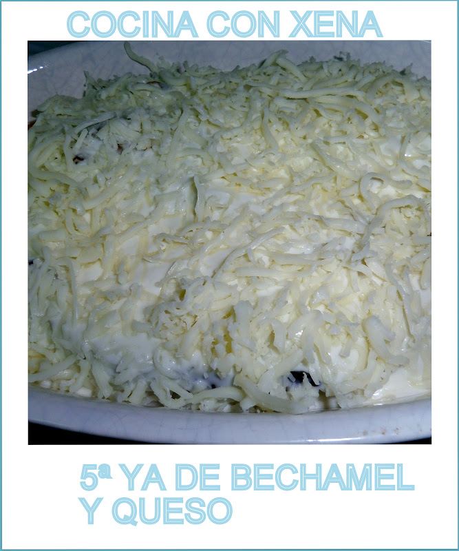 Ponemos las berenjenas horneadas en una fuente apta para horno, encima ponemos una capa del preparado de carne, ponemos otra capa de berenjenas, otra de carne y acabamos con capa de berenjena, la podemos hacer con las capas que queramos, ponemos la bechamel y el queso por encima y metemos al horno previamente precalentado, hasta que veamos dorado, sacamos y servimos....