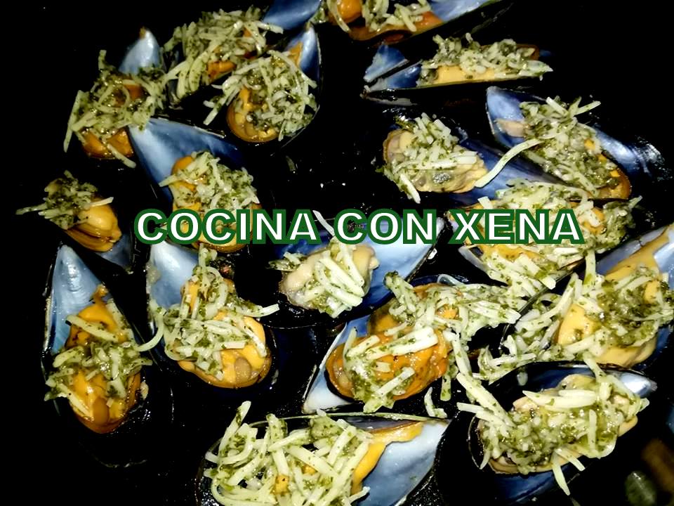 Cogemos la mezcla y vamos poniendo encima de cada mejillón con una cuchara.